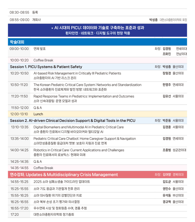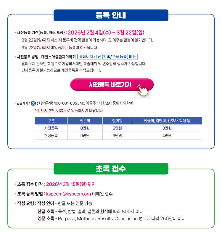 제 9회 대한소아중환자의학회 학술대회 및 연수강좌 사전등록 안내